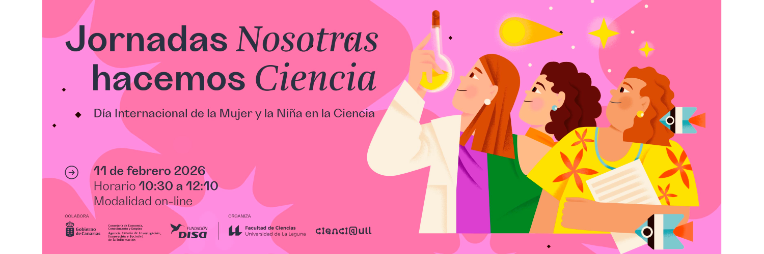 Con la finalidad de contribuir a la conmemoración del día internacional de la «Mujer y la Niña en la Ciencia (11 de febrero de 2025)» se celebra una nueva edición de la jornada «Nosotras Hacemos Ciencia», que tiene como finalidad «mostrar la importancia de la figura de la mujer en la ciencia, la innovación y la tecnología, así como para fomentar las vocaciones científicas y tecnológicas de las jóvenes canarias». Esta iniciativa es promovida por la Facultad de Ciencia de la ULL y la Unidad de Cultura Científica y de la Innovación (Cienci@ULL), cuenta con la colaboración de la Agencia Canaria de Investigación, Innovación y Sociedad de la Información del Gobierno de Canarias para su comunicación y difusión.