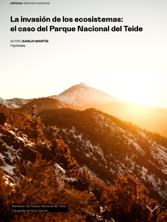 Este lugar “marciano” en medio de la isla de Tenerife es visitado por más de tres millones de turistas cada año; no es difícil imaginar el impacto que esta presión ejerce sobre este entorno. Pero no es el turismo el único agente que está afectando al Parque Nacional del Teide; unos recientes residentes están haciendo estragos entre su flora, que incluye a especies vegetales únicas en el mundo, endémicas, que solo se dan en el Parque. Es el caso del tajinaste rojo (Echium wildpretii), el rosal del guanche (Bencomia exstipulata), el alhelí del Teide (Erysimum scoparium), la retama del Teide (Cytisus supranubius), la jara de Las Cañadas (Cistus osbeckifolius) o la violeta del Teide (Viola cheiranthyfolia.