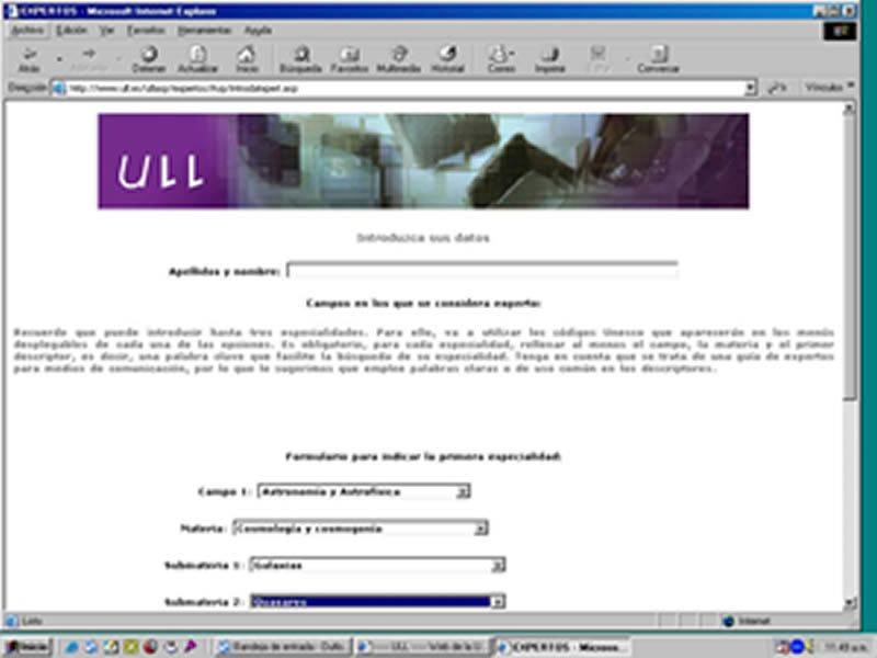 Para recabar toda la información necesaria, los profesores que se comprometan a atender a los medios informativos deberán rellenar un formulario especificando las materias en las que se consideran expertos y añadiendo palabras clave que faciliten la búsqueda para los periodistas, ayudados además por un menú desplegable de códigos UNESCO, donde se encuentran la mayoría de las especialidades docentes. La aplicación informática, ubicada en http://www2.ull.es/ullasp/expertos/asp/bus_xpert.asp, también está disponible en la página principal de la web de la universidad así como en la de la oficina de prensa. Además, se ha habilitado un correo electrónico, expertos@ull.es, para aclarar cualquier incidencia.