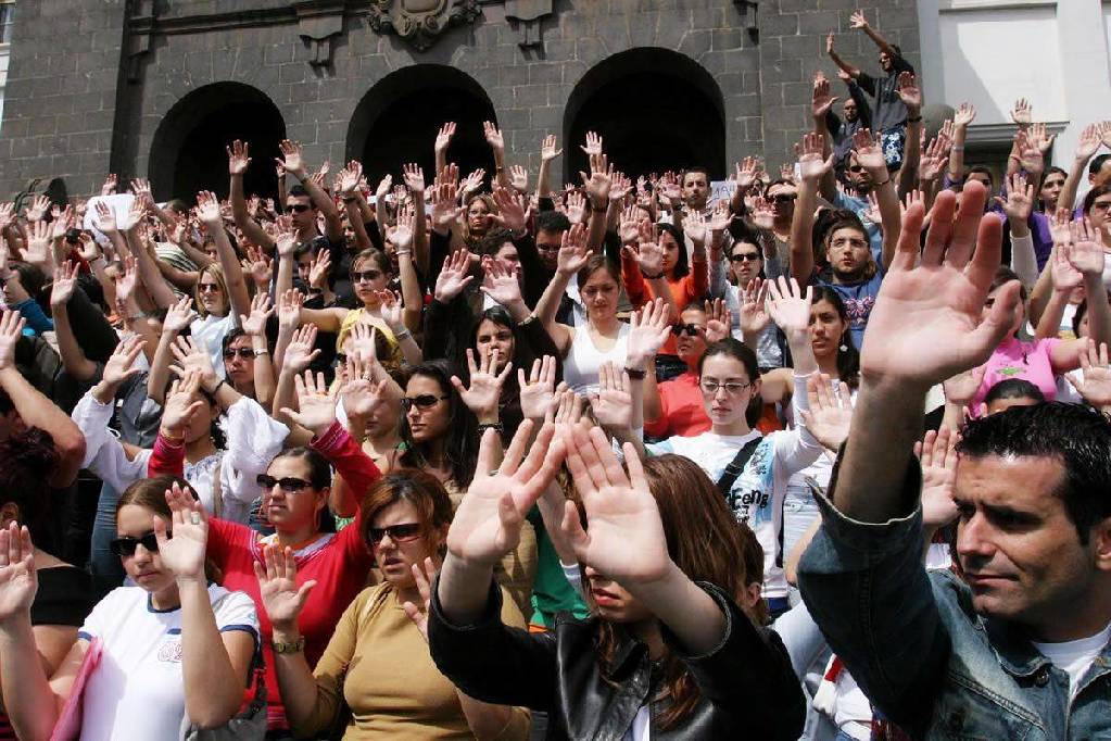 Cientos de estudiantes, profesores y personal de administración y servicios de la Universidad de La Laguna se manifestaron hoy viernes 12 de marzo a las puertas del edificio central para protestar contra la masacre terrorista perpetrada ayer en Madrid.