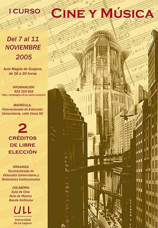 El Vicerrectorado de Extensión Universitaria ha organizado un curso que, bajo el nombre de Cine y Música, analizará la historia y estética de las partituras y canciones escritas para películas. El seminario surge de la colaboración entre tres colectivos dependientes del vicerrectorado organizador: las aulas de cine y música y la banda sinfónica de la ULL.
