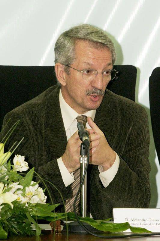 Tras al acto protocolario de apertura, Alejandro Tiana procedió a exponer las líneas generales de la LOE, ley muy discutida pero que, a su parecer, puede resolver muchos de los retos que se plantean al sistema educativo español. En primera instancia, valoró la trayectoria experimentada por la educación estatal: en la generación que actualmente ronda los cincuenta años, sólo terminó el Bachillerato un 33%; en la actualidad, ese porcentaje es del 67%. «Este avance no es obra de un gobierno o de otro, es fruto de un esfuerzo colectivo durante muchos años».