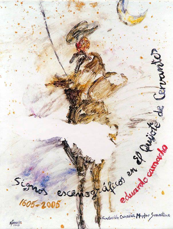 El cartel seleccionado ha sido editado por la Fundación Canaria Mapfre Guanarteme, y ha servido como imagen corporativa de una exposción itinerante que actualmente se encuentra recorriendo Canarias. La serie plástica Signos escenográficos en El Quijote de Cervantes está compuesta por 153 dibujos y pinturas, cuyo interés artístico y cultural le ha valido el permiso para utilizar el logotipo oficial del IV Centenario de la Publicación de El Quijote, concedido por el Ministerio de Cultura.