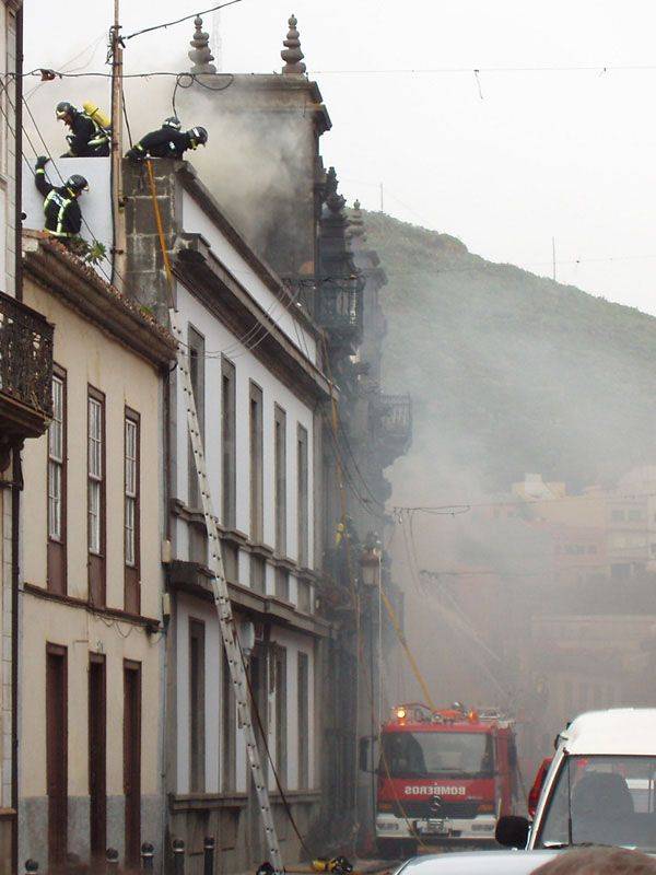 El gabinete de prensa pudo tomar algunas imágenes de lo sucedido ayer en la calle San Agustín de La Laguna. Para ver fotografías, pinche en «+ fotos» (bajo la fotografía). Si quiere ver un breve video de uno de los helicópteros descargando agua sobre el edificio, pinche aquí (formato .mov, es necesario tener el programa gratuito Quick Time).