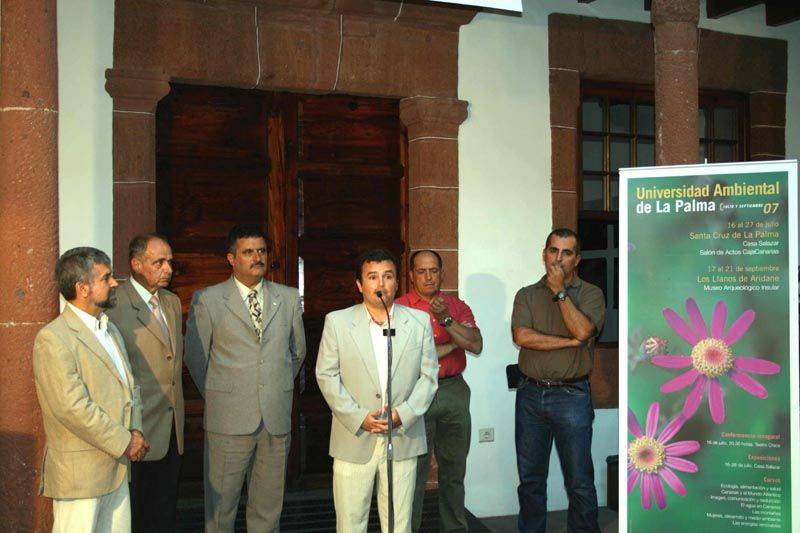 La exposición fotográfica titulada 3 pasiones x las montañas quedó inaugurada en la tarde de ayer en el Palacio Salazar de Santa Cruz de La Palma. En el acto estuvieron presentes Antonio Ramos Vilar, Fernando Cova y Pedro Milán fotógrafos, alpinistas y montañeros canarios, junto con Mauro Fernández, el presidente de la Fundación Canaria para el Desarrollo y la Cultura Ambiental de La Palma, José León García, director académico de la Universidad Ambiental, y Primitivo Jerónimo, consejero del Cabildo Insular de La Palma.
