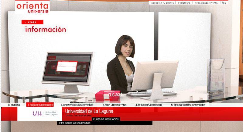 Universia, en su compromiso con la juventud y el mundo universitario, y siguiendo el camino abierto por experiencias como Second Life, ha puesto en marcha la Feria OrientaUniversia (http://orienta.universia.es), una novedosa y atractiva forma de elegir universidad y carrera.