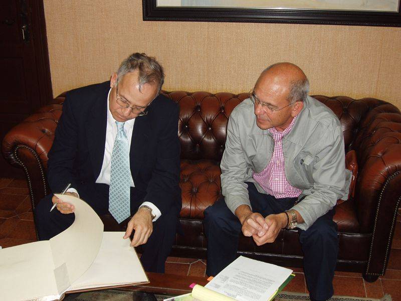 El rector accidental de La Universidad de La Laguna, Lorenzo Moreno, y su homólogo, Julio Marrero Giráldez, de la Pontificia Universidad Católica del Ecuador se reunieron hoy, viernes 24 de agosto de 2007, para concretar algunas áreas de un convenio marco de colaboración firmado entre ambas instituciones durante el curso académico 2006/07.