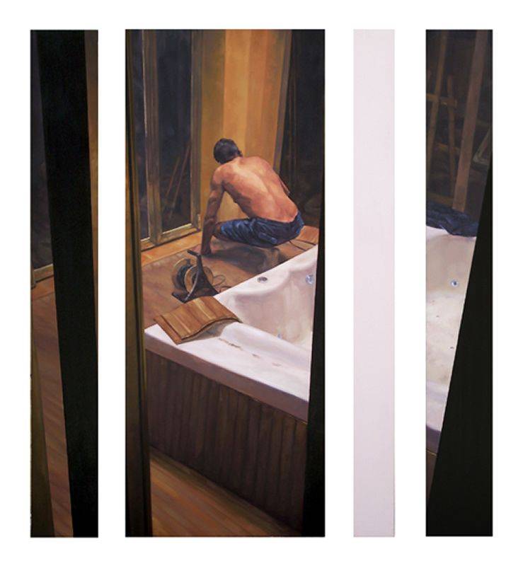 El descanso prometido es una obra de carácter figurativo en el que se pretende alentar sensaciones de intimismo, pero también de misterio. Tal y como la describe Artime, es un cuadro en el que se ve a un hombre de espaldas sin saber bien qué es lo que está haciendo. La imagen, intimista, juega con la composición, la división, el ritmo, el ruido y el vacío para convertir al espectador en un voyeur.