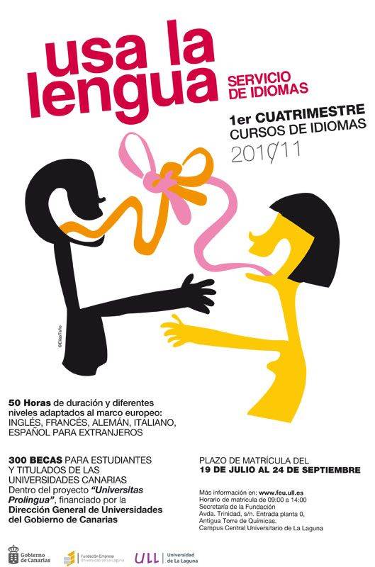 La Fundación Empresa Universidad de La Laguna (FEULL) ha abierto este año el plazo de matrícula de los cursos cuatrimestrales de idiomas antes del comienzo de las vacaciones. Además, la Dirección General de Universidades e Investigación del Gobierno de Canarias financia 300 becas de 175 euros cada una para el pago de la matrícula, que pueden ser solicitadas por estudiantes matriculados en la ULL y los titulados de las universidades canarias que hayan finalizado sus estudios con posterioridad al año 2006. El precio es de 175 euros para la comunidad universitaria y de 225 para los demás.