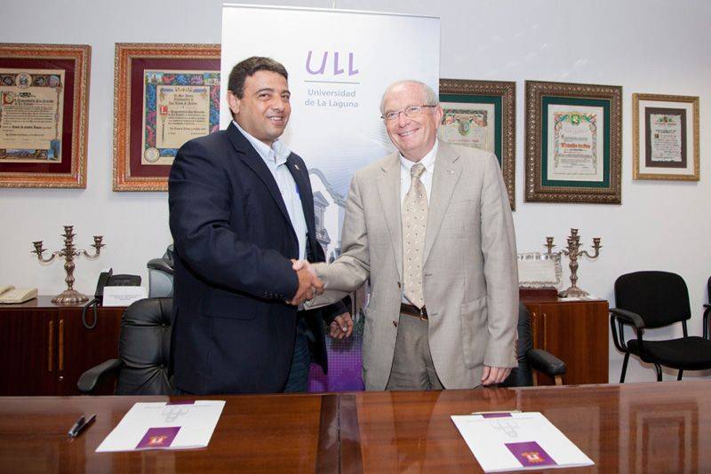 El rector de la Universidad de La Laguna, Eduardo Doménech, y el presidente de la Federación de Lucha Canaria, Germán Rodríguez, han firmado en la mañana de hoy, miércoles, 13 de octubre, un convenio de colaboración que tendrá una vigencia de cuatro años.