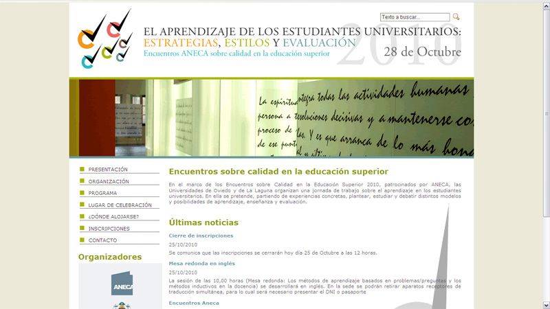 La Agencia Nacional de Evaluación de la Calidad y Acreditación (ANECA) ha seleccionado cinco universidades en el marco de la IV convocatoria de Encuentros sobre Calidad en la Educación Superior para el estudio, reflexión y debate sobre temas estratégicos de la Educación Superior. En el marco de estos encuentros, la Universidad de La Laguna, junto con la Universidad de Oviedo, han organizado una jornada de trabajo sobre el aprendizaje en los estudiantes universitarios. En ella se pretende, partiendo de experiencias concretas, plantear, estudiar y debatir distintos modelos y posibilidades de aprendizaje, enseñanza y evaluación.