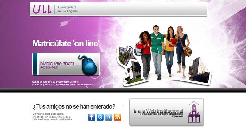 El pasado jueves, 22 de julio, se abrió el plazo de automatrícula (matrícula en línea a través de la página web) en la Universidad de La Laguna. Ese mismo día se registraron un total de 1.941 matrículas, especialmente en las titulaciones ofertadas por las escuelas universitarias de Ciencias Empresariales y Arquitectura Técnica, y las facultades de Educación y de Ciencias Económicas y Empresariales, cuyo alumnado ha sido los que más han utilizado este servicio hasta el momento.