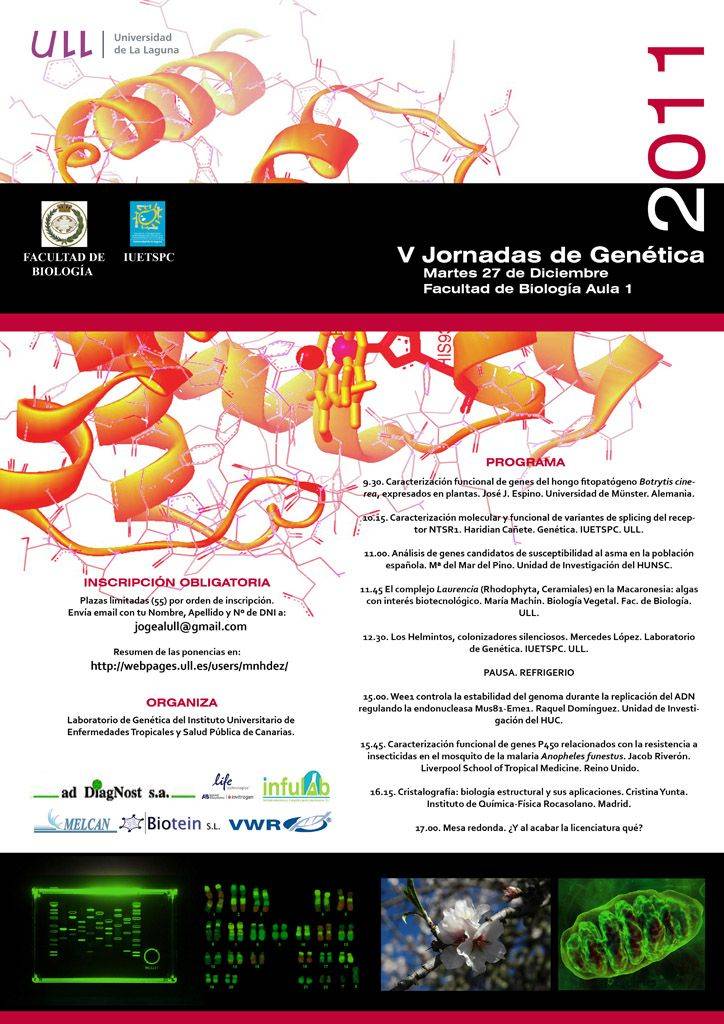 El grupo de investigación Genética Molecular y Biodiversidad del Instituto Universitario de Enfermedades Tropicales y Salud Pública de Canarias, adscrito a la Universidad de La Laguna, ha organizado la quinta edición de las Jornadas de Genética de la ULL, que se celebrará el martes 27 de diciembre en el Aula 1 de la Facultad de Biología.