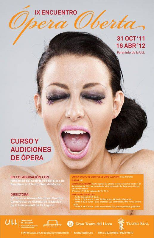 El Vicerrectorado de Relaciones Universidad y Sociedad de la Universidad de La Laguna, en colaboración con el la Fundación del Gran Teatre del Liceo de Barcelona y el Teatro Real de Madrid, organiza la novena edición del curso de audiciones ‘Ópera Oberta’.