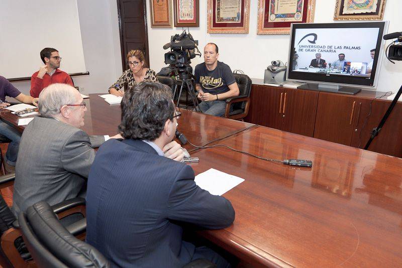 Los rectores de las universidades públicas canarias, Eduardo Doménech por de la Universidad de La Laguna, y José Regidor de la Universidad de Las Palmas de Gran Canaria, han ofrecido hoy, martes 8 de noviembre de 2011, una rueda de prensa conjunta a través de videoconferencia desde los dos rectorados. El motivo que ha propiciado esta comparecencia es manifestar el malestar y preocupación que ha producido el anuncio de recortes presupuestarios en el área de Educación contemplados en el actual proyecto de Ley de Presupuestos de la Comunidad Autónoma Canaria.
