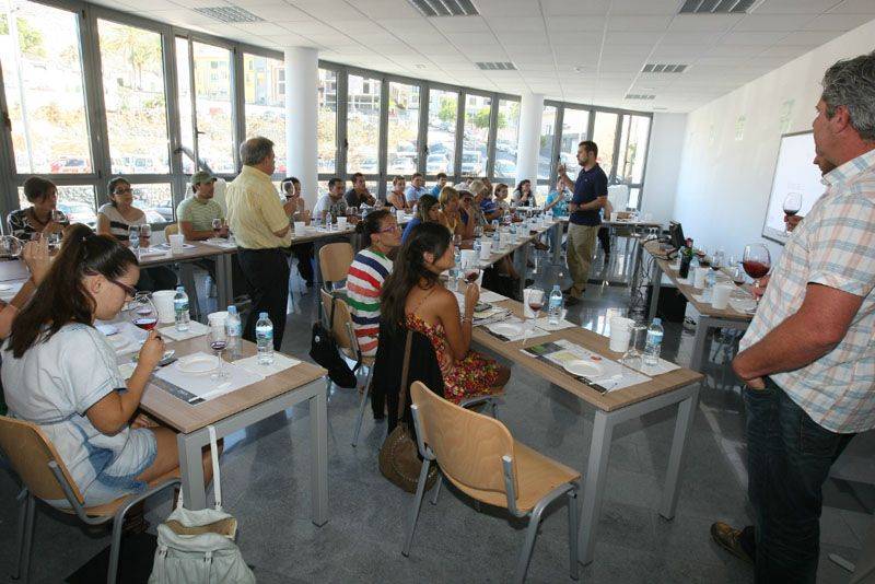 Con esa idea de difundir los productos canarios entre los más jóvenes, la sesión del curso de hoy mmiércoles 20 de julio fue eminentemente práctica, y en ella se dio a conocer la actividad de dos bodegueros Pedro Álvarez, de “Tierra de Aponte”, y Felipe Monje, de “El Monje”. Tras explicar cómo han desarrollado ellos sus actividades de turismo gastronómico, procedieron a una pequeña cata de vinos en la que los alumnos probaron diferentes caldos y expresaron su opinión.