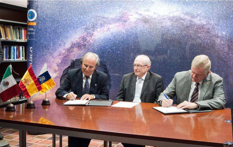 El rector de la Universidad Autónoma de Nuevo León (UANL, México), Jesús Ancer Rodríguez, y el Director del Instituto de Astrofísica de Canarias (IAC), Francisco Sánchez, han firmado en la mañana de hoy un documento que abre la víapara el establecimiento formal de una cooperación entre ambas instituciones entemas relativos a Astrofísica y Ciencias del Espacio. La firma ha estadopresidida por el rector de la Universidad de La Laguna (ULL), Eduardo Doménech.
