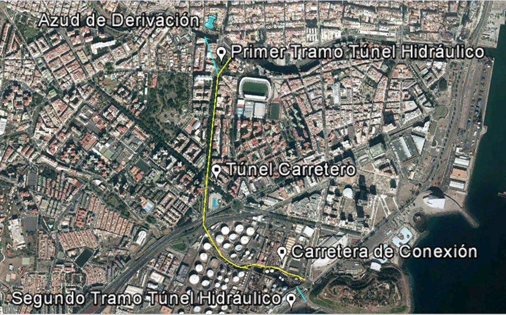 En el segundo proyecto, presentado por Raúl González Navarro, consiste en un túnel de carretera que, puntualmente, al llegar a la avenida sería cerrado al tráfico en condiciones de seguridad para permitir evacuar el caudal del Barranco de Santos hacia el barranco de la refinería, que desemboca en el mar junto al Palmetum.