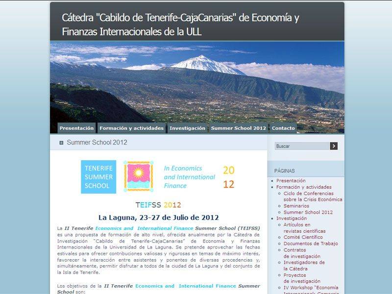 La Facultad de Ciencias Económicas y Empresariales de la Universidad de La Laguna acoge la II Tenerife Economics and International Finance Summer School (TEIFSS), organizada por la Cátedra “Cabildo de Tenerife-CajaCanarias” de Economía y Finanzas Internacionales de la ULL y que se inaugura hoy, lunes 23 de julio de 2012.
