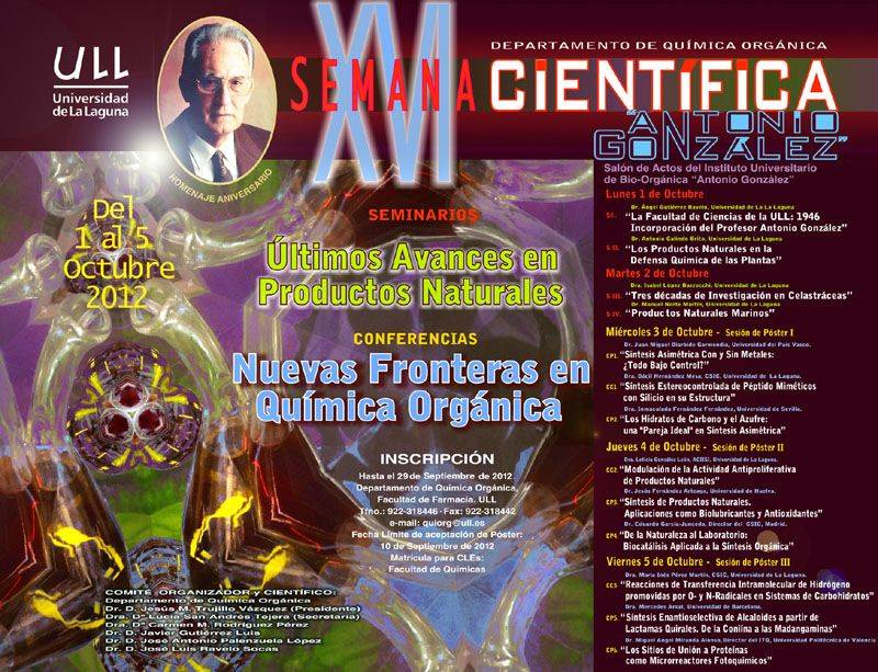 Esta edición coincide con el décimo aniversario del fallecimiento de Antonio González y González, rector honorario de la Universidad de La Laguna y fundador del centro científico que lleva su nombre. Por este motivo los días previos a la inauguración se ha impartido una serie de ponencias de profesores del departamento de Química Orgánica de la institución académica que fueron discípulos suyos, que versaron sobre los últimos avances en productos naturales, materia de la cual el homenajeado fue un impulsor, salvo una de ellas, centrada en repasar la trayectoria del propio Antonio González en la institución académica.