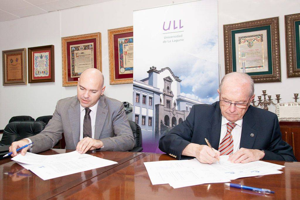 La Universidad de La Laguna y la empresa Premivac, Seguridad y Salud Laboral, S.L.U han firmado hoy, martes 6 de noviembre, un convenio para la realización de prácticas curriculares externas de los estudiantes de máster y de grado. Por parte de la institución académica rubricó el acuerdo su rector, Eduardo Doménech, mientras que en representación de la empresa lo hizo su administrador, José Manuel Ratón.