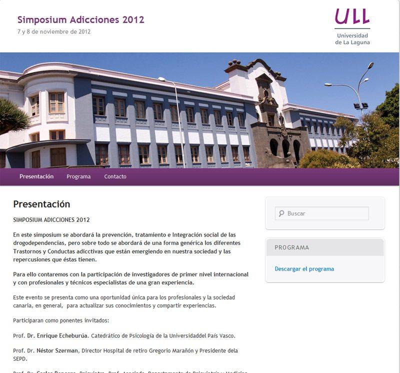 La conferencia inaugural del congreso, cuya página web es http://eventos.ull.es/adicciones2012 , correrá a cargo del profesor Enrique Echeburúa, catedrático de Psicología de la Universidad del País Vasco, y que tratará a las 10 horas la “Adicción a Internet y a las redes sociales: realidad y retos futuros”.