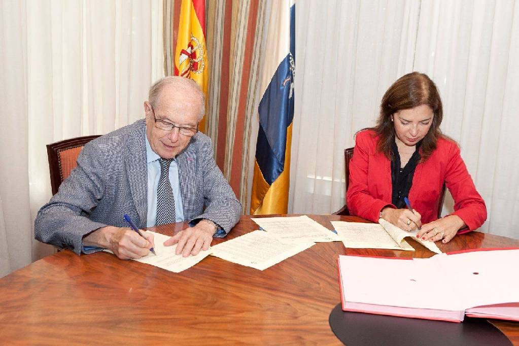 El Servicio Canario de la Salud, perteneciente a la Consejería de Sanidad del Gobierno de Canarias, y la Universidad de La Laguna han formalizado un convenio marco de colaboración para la realización de prácticas curriculares externas del alumnado de la Universidad. La firma del acuerdo, que tuvo lugar hoy en la sede de la Consejería de Sanidad en Santa Cruz de Tenerife, la han realizado la consejera de Sanidad del Gobierno de Canarias, Brígida Mendoza, y el rector de La Universidad de La Laguna, Eduardo Doménech.