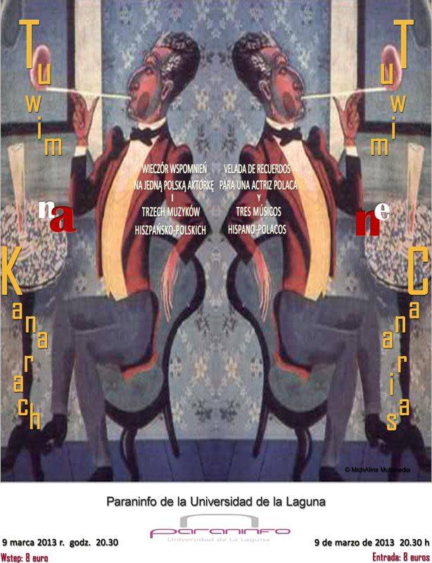 El Paraninfo de la Universidad de La Laguna acogerá mañana sábado  9 de marzo a las 20:30 horas el espectáculo “Twuin Na Kanarach” en el que se dará a conocer las letras poéticas del escritor polaco Julian Twuin.
