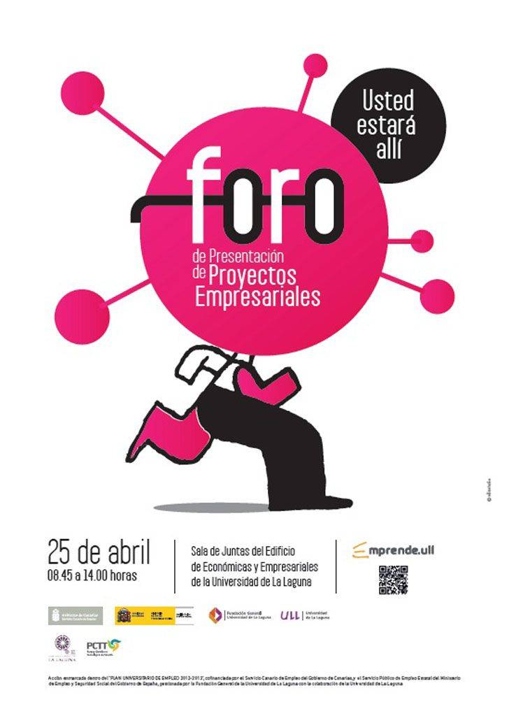 El próximo jueves 25 de abril quince jóvenes de la Universidad de La Laguna participarán en el Foro de Presentación de Proyectos Empresariales de la Universidad de La Laguna (ULL), que se celebrará en la Sala de Juntas del Edificio de Económicas y Empresariales de 9 a 14 horas.