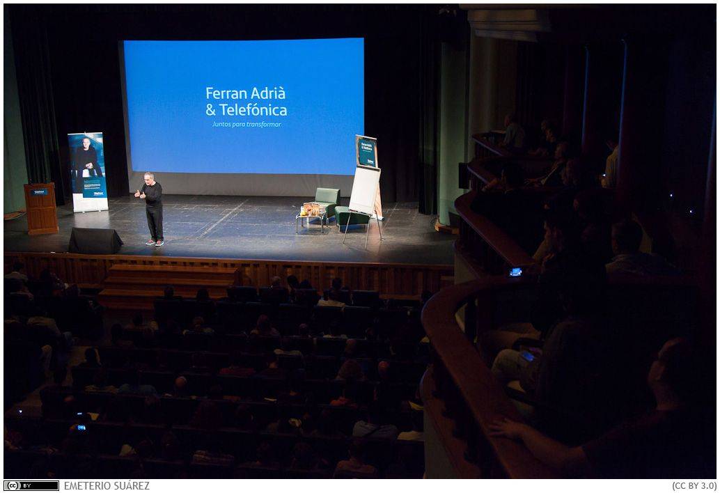 El prestigioso chef Ferran Adrià ha dictado hoy, miércoles 29 de mayo de 2013, una conferencia celebrada en el Paraninfo de la institución académica auspiciada por la empresa Telefónica. El ponente no se centró específicamente en asuntos gastronómicos, sino que reflexionó sobre el poder transformador de la innovación, basándose en su propia experiencia.