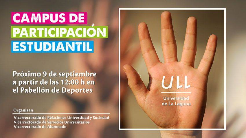 Los vicerrectorados de Alumnado, Servicios y Relaciones Universidad y Sociedad de la Universidad de La Laguna han organizado para el lunes 9 de septiembre, primer día de clase en este centro académico, un Campus de Participación Estudiantil, en la idea de presentar a los nuevos alumnos y también a los que ya son universitarios la oferta global de la institución académica en deportes, cultura, acción política, solidaridad o creatividad.