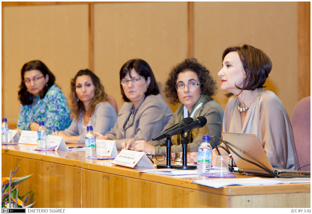 Serrano-Niza destacó en su intervención la dificultad y la incertidumbre al organizar un evento de estas características, ante la falta de recursos económicos y el poco apoyo a la ciencia, al tiempo que criticó severamente la política científica de la Unión Europea, definida a través de la estrategia Horizonte 2020, “en la que el binomio esencial es mercado y ciencia, y el que el género aparece en escasas ocasiones”. Para ella, hablar de desarrollo científico cuando no hay dinero para renovar plantillas, no se puede mejorar las condiciones de los investigadores y se va a perder toda una generación de profesionales resulta falaz. “No puedo entender una ciencia que se haga sin crédito, en su doble sentido: sin dinero y sin reputación”.