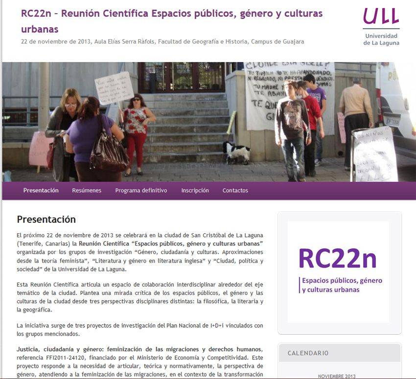 Varios grupos de investigación de la Universidad de La Laguna han organizado un congreso que, bajo el nombre “Espacios públicos, género y culturas urbanas”, se celebrará mañana viernes 22 de noviembre en el Aula Elías Serra Ráfols de la Facultad de Geografía e Historia, en el campus de Guajara. Esta reunión científica articula un espacio de colaboración interdisciplinar alrededor del eje temático de la ciudad, y plantea una mirada crítica de los espacios públicos, el género y las culturas de la ciudad desde tres perspectivas disciplinares distintas: la filosófica, la literaria y la geográfica.