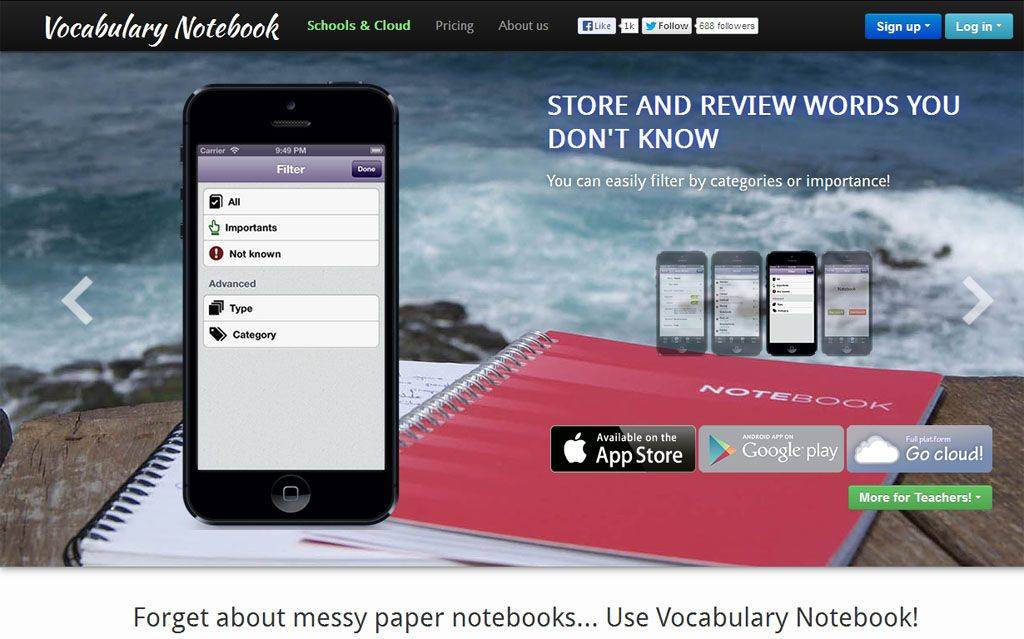 Vocabulary Notebook fomenta la personalización del aprendizaje de vocabulario, ya que los estudiantes introducen sus propias definiciones, frases de ejemplo o categorías para interiorizar mejor las nuevas palabras que aprenden. Además, provee todas las ventajas de la tecnología, como son los filtros para estudiar el vocabulario por importancia, grado de conocimiento o temática; las ediciones sencillas y el no requerir transporte, pues el cuaderno está accesible online desde cualquier dispositivo.
