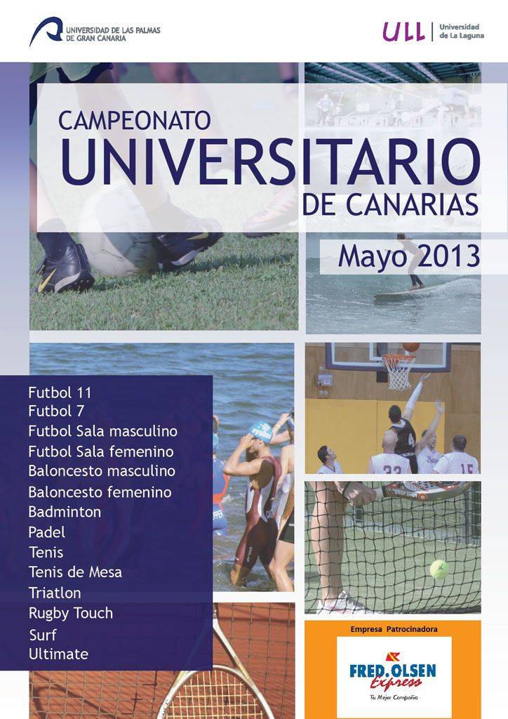 La Universidad de La Laguna y la de Las Palmas de Gran Canaria organizan en conjunto el Campeonato Universitario de Canarias 2013, que se celebrará a lo largo del mes de mayo. Los finalistas absolutos del Trofeo Rector de la institución lagunera competirán en este encuentro con sus homólogos grancanarios.