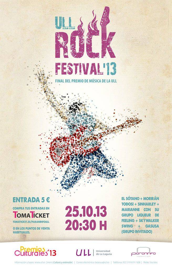 Un año más, la Universidad de La Laguna celebra su festival ULL Rock, en el que acoge los principales valores musicales del momento en el entorno isleño. Tras ocho años de existencia, esta iniciativa, que depende del Vicerrectorado de Relaciones Universidad y Sociedad, ha logrado consolidarse como una relevante  plataforma de promoción para los nuevos talentos locales en estilos como el jazz, el rock, el pop, la canción de autor o las nuevas músicas en la isla de Tenerife. Tendrá lugar hoy viernes 25 de octubre en el Paraninfo del centro universitario a partir de las 20.30 horas.