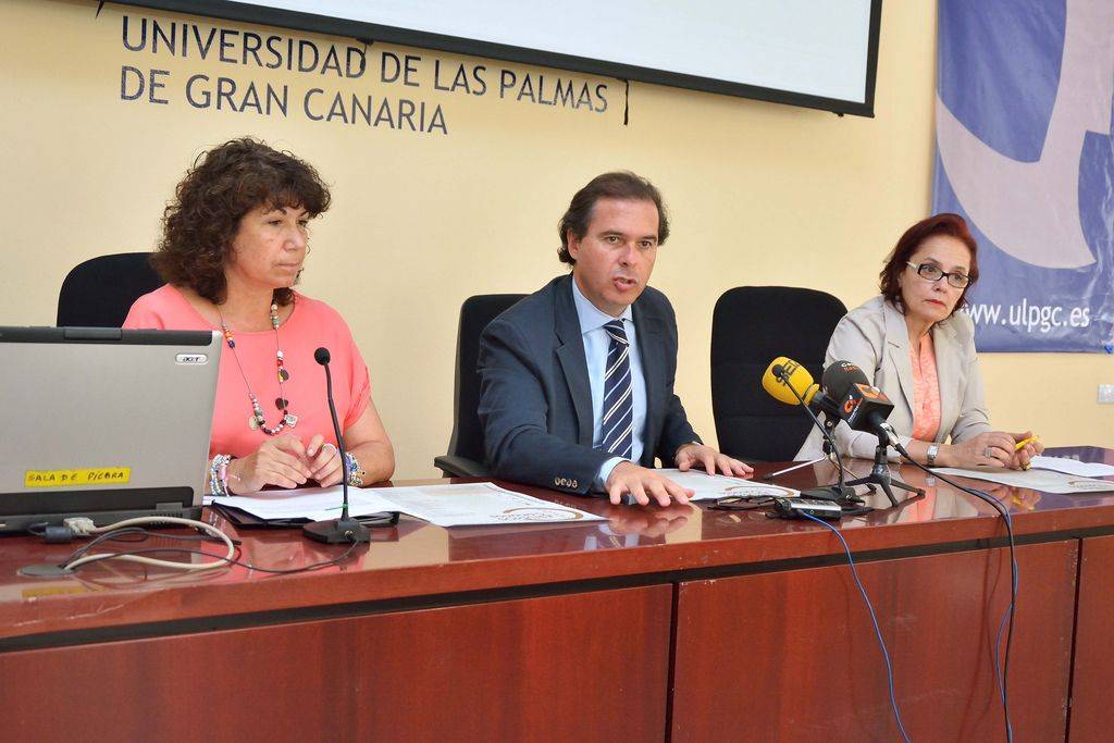El Vicerrector de Estudiantes y Empleabilidad de la Universidad de Las Palmas de Gran Canaria, Nicolás Díaz de Lezcano Sevillano, junto con la Vicerrectora de Relaciones Universidad y Sociedad de la Universidad de La Laguna, María Nélida Rancel Torres, y la primera teniente alcalde del Ayuntamiento de Santa María de Guía, María del Carmen Mendoza Hernández, han presentado hoy, miércoles 10 de julio, la programación de la VI edición del Campus de Estudios Canarios ‘Néstor Álamo’, que se celebrará en Santa María de Guía del 22 de julio al 2 de agosto de 2013.