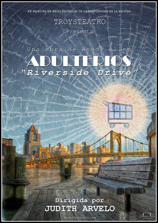 El Paraninfo universitario continúa con la programación anual de la Muestra de Artes Escénicas. En esta ocasión Troysteatro se sumerge en el mundo del cineasta Woody Allen. En “Adulterios. Riverside drive” su protagonista, Jim, espera su cita clandestina, cuando se encuentra en la rivera del río Hudson con Fred. El viandante prácticamente le obliga a mantener una conversación en la que la realidad y el absurdo se mezclan para crear un diálogo divertido que esconde, una vez más, una reflexión sobre el amor, el desamor, el matrimonio y la infidelidad.