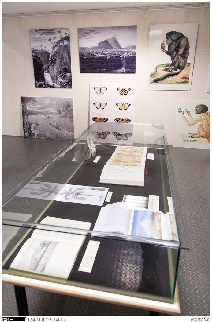 La muestra, titulada “Humboldt y su obra: una mirada a las ilustraciones”, permanecerá abierta hasta el próximo 6 de diciembre, y consta de 24 paneles que reproducen a gran escala algunas de las ilustraciones a color y grabados monocromos presentes en los volúmenes firmados por el naturalista alemán. Proceden en buena parte de 'Vues de cordillières et monumens des peuples indigènes de l’Amerique', pero también hay espacio para piezas que corresponden a los trabajos de este naturalista germano en los campos de la geografía, la zoología y la botánica.