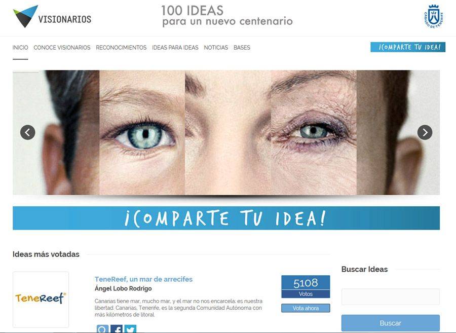 ‘Visionarios’ es una iniciativa promovida por el Cabildo de Tenerife para invitar a la ciudadanía a compartir sus ideas y propuestas para mejorar la isla. Con la propuesta se pretende animar a la gente a compartir proyectos innovadores que giren en torno al modelo de isla autónoma, exterior y ultraconectada. Su objetivo principal es convertir a la ciudadanía en protagonista del futuro de Tenerife, poniendo en valor su creatividad, su compromiso con la sociedad y con el territorio, propiciando la puesta en común de ideas originales que pueden ser de gran interés para todos.