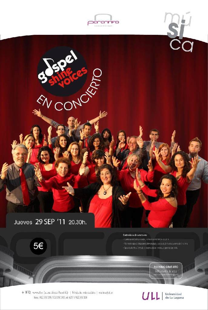 Nacido en 2008, Gospel Shine Voices es el primer grupo coral de música negra, gospel, jazz y swing, que se ha creado en Tenerife. Esta formación, además de llevar su música por los distintos puntos de Canarias, realiza proyectos didácticos musicales a través de talleres formativos puntuales de ritmo, técnica vocal, coreografía y técnicas de interpretación.