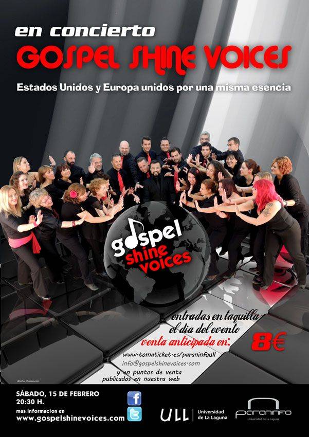 El Paraninfo de la Universidad de La Laguna acoge mañana sábado 15 de febrero, a las 20:30 horas, el concierto “Estados Unidos y Europa unidos por una misma esencia”, de la formación musical Gospel Shine Voices (GSV).