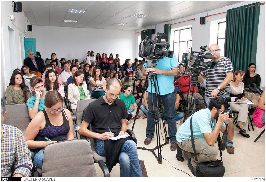 “Hemos aguantado esta situación gracias a la profesionalidad del profesorado y del personal de administración y servicios, además de la paciencia que están teniendo los alumnos”, explicó en el transcurso de una rueda de prensa celebrada en el Salón de Grados de la facultad y atestada de estudiantes.