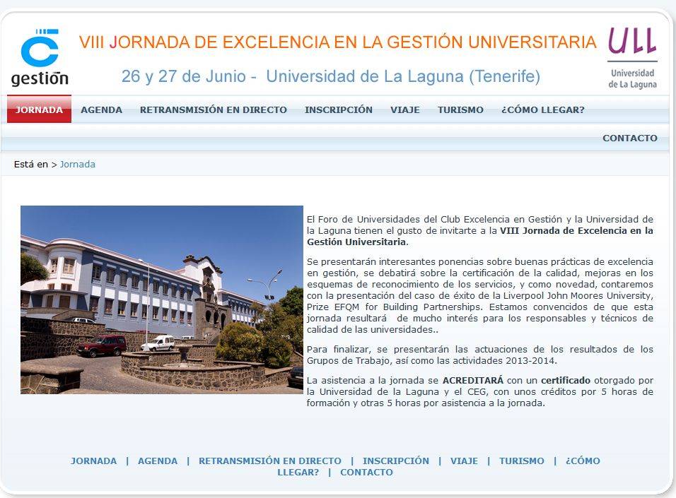 La jornada propiamente dicha se erige en un foro para compartir buenas prácticas de excelencia en la gestión de instituciones académicas, debatir sobre la certificación de la calidad e introducir mejoras en los esquemas de reconocimiento de los servicios. En ella participarán representantes tanto de la gestión como de servicios de universidades como la de Jaén, Granada, John Moores de Liverpool y la propia ULL, y de instituciones como las agencias de acreditación de la calidad y certificación universitaria nacional (ANECA) y regional (ACCUEE).