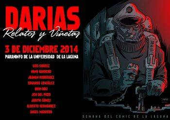 Menos conocida es su carrera literaria, que ha ido realizando en paralelo, a lo largo de todos estos años. Formada principalmente por relatos cortos, la obra de Darias trata los más diversos temas: fantástico, costumbrismo, humor. En esta exposición los dibujantes han querido rendir homenaje a su labor en el mundo de la historieta, adaptando su trabajo al dibujo y a ese medio que tanto ama.