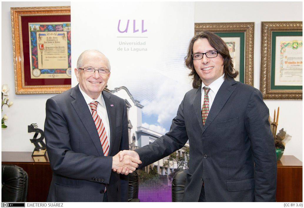 El Rectorado de la Universidad de La Laguna ha acogido hoy jueves 16 de enero la firma de un anexo al convenio marco de regula la relación institucional entre el centro académico y el Parque Etnográfico Pirámides de Güímar, en el que también interviene la Fundación General de la ULL. Lo que hoy se ha suscrito servirá para instalar en el citado parque dos jardines botánicos sostenibles con un importante componente didáctico, ya que están pensados para que el visitante interactúe con ellos a través de las nuevas tecnologías. Los profesores Victoria Martín Osorio y Wolfredo Wildpret (emérito), especialistas en botánica, son los encargados por parte de la institución académica de llevar a cabo esta iniciativa.