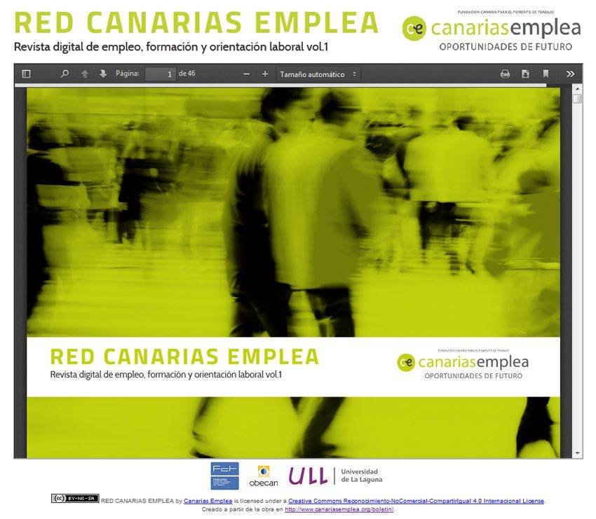 Dos profesores del Departamento de Economía y Dirección de Empresas de la Universidad de La Laguna, Francisco J. García Rodríguez y Manuel González de la Rosa, han participado en la elaboración del primer volumen de la "Revista digital de empleo formación y orientación laboral": http://www.canariasemplea.org/boletin/ , concebida como un instrumento básico de diagnóstico de las tendencias del mercado en las islas y los sesgos más importantes que marcan la empleabilidad en esta región.