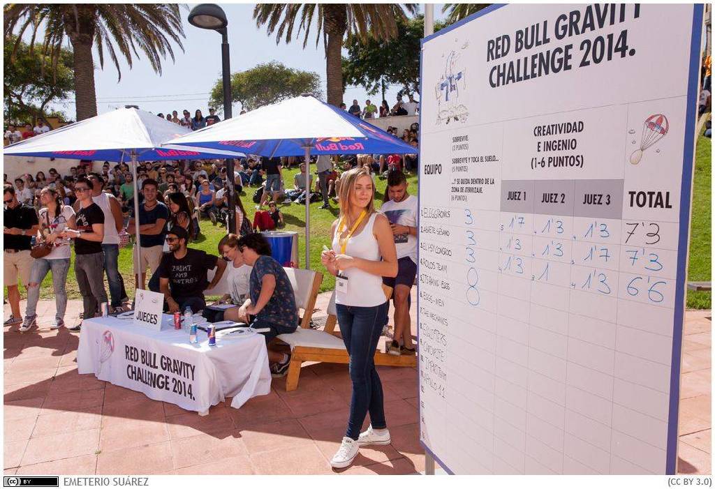 Bajo un sofocante calor, pero con muy buen ambiente y mucha animación, el patio de entrada a las secciones de Física y Matemáticas de la Universidad de La Laguna acogió hoy un curioso certamen patrocinado por la marca de bebidas RedBull y denominado 'Gravity Challenge 2014'. Once equipos de alumnos de Física, Matemáticas e Ingeniería Mecánica, mayoritariamente, compitieron para lograr una hazaña: lanzar un huevo desde 15 metros de altura de tal manera que al caer no se rompa y aterrice en el radio de acción estipulado. Ayudados de una grúa, los alumnos utilizaron todo tipo de artilugios para conseguir el objetivo, desde aviones de corcho, globos, paraguas o esponjas. Varios grupos de estudiantes lograron esta proeza. Esta acción en la Universidad de La Laguna es la cuarta y última que la marca comercial realiza en España en este certamen internacional. Ver videonoticia