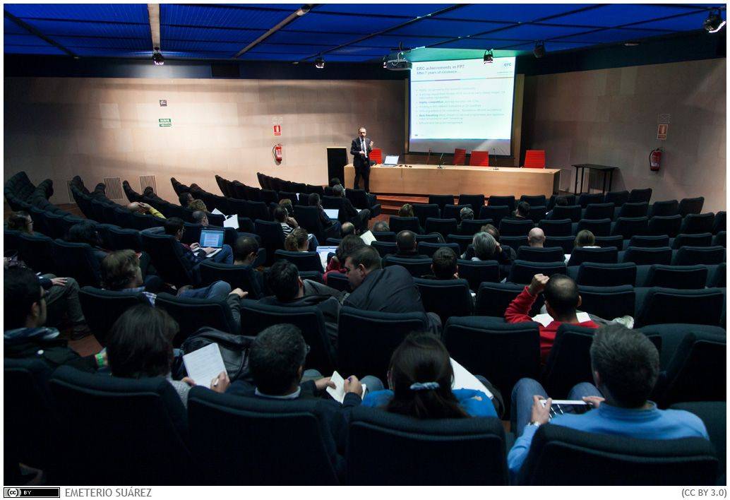 El objetivo del ponente era presentar este programa de ayudas para animar a los investigadores a presentarse, dado que en estos momentos se abre un nuevo periodo plurianual de esta convocatoria, enmarcada en el llamado Horizonte 2020, que será más ambicioso, dado que el presupuesto concedido por la Comisión Europea para repartir los próximos siete años será de 13.000 millones de euros.