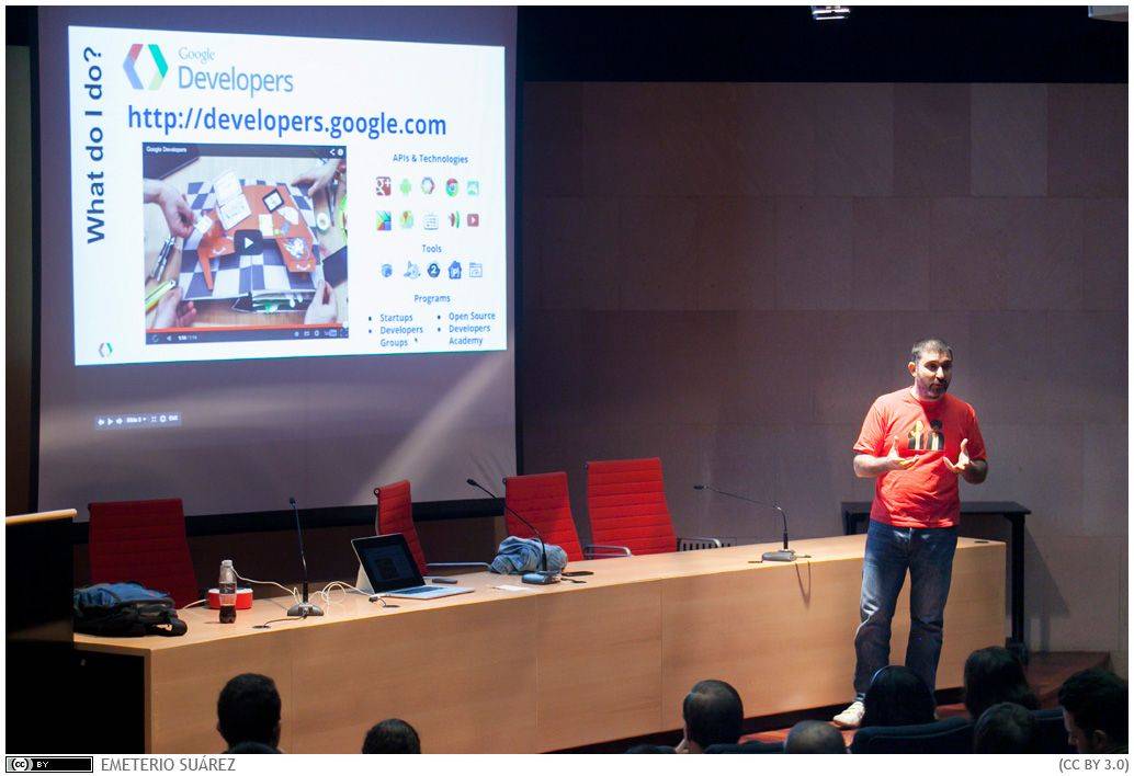 Martínez Ortiz impartió hoy, martes 18 de febrero una conferencia en el Aula Magna del edificio de las facultades de Física y Matemáticas de la Universidad de La Laguna. En ella, ofreció un panorama general sobre la estrategia de Google para relacionarse con los grupos de desarrolladores de software y, posteriormente, se centró en presentar el lenguaje de programación Go, diseñado por la compañía estadounidense para afrontar con mayor eficacia la programación en sistemas masivos como el suyo.